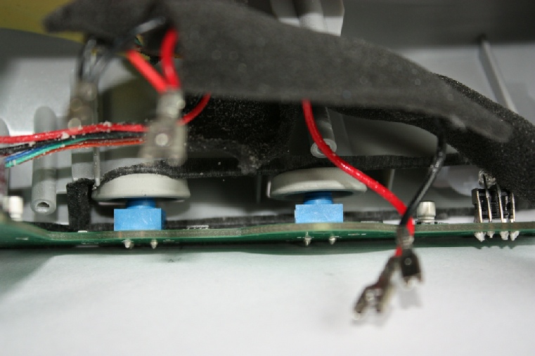 Foam is wrapped around the cables (partly removed in the photo), presumably to avoid vibration if touching the speakers.